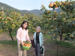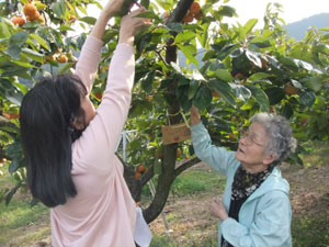 じいちゃんばあちゃんと楽しく柿狩りです