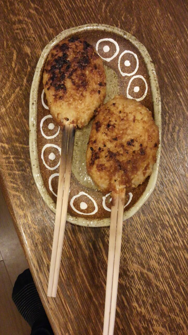 柿の木の下で五平餅作り、豚汁、漬物、ミニコーンの炒め物などでお昼ご飯です。