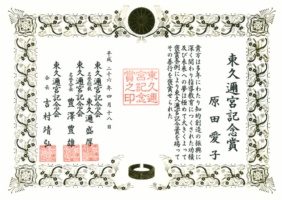 「東久邇宮文化褒賞」「東久邇宮記念賞」を受賞しました