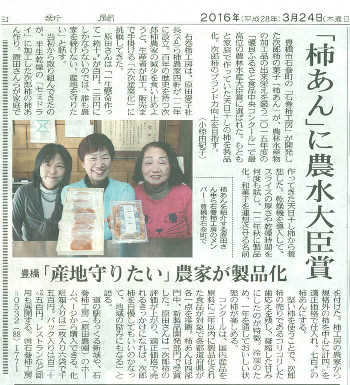 「柿あん」農林水産大臣賞を受賞しました