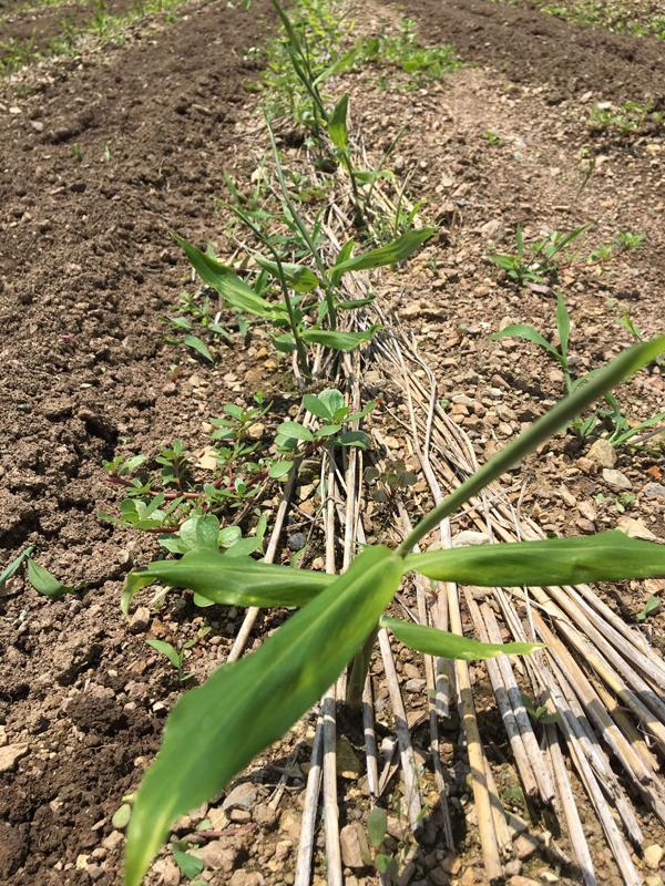 生姜に肥料をやり土寄せ。サツマイモは草に紛れどこにあるのか。
