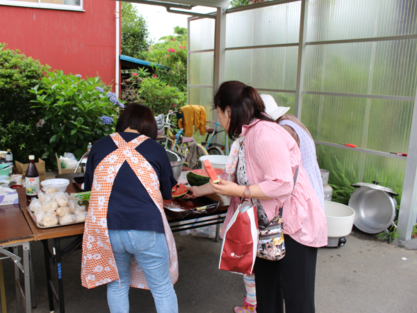 お待ちかねのお昼ご飯!デザートに西瓜もご用意しました
