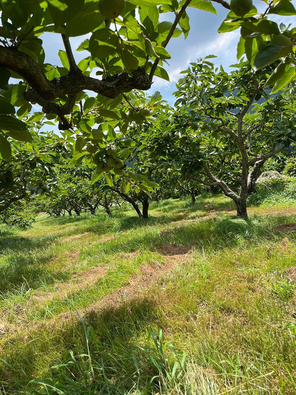 暑い時ですが、今日は風があるので木の下に入ると涼しいので少し柿の摘果作業ができます。