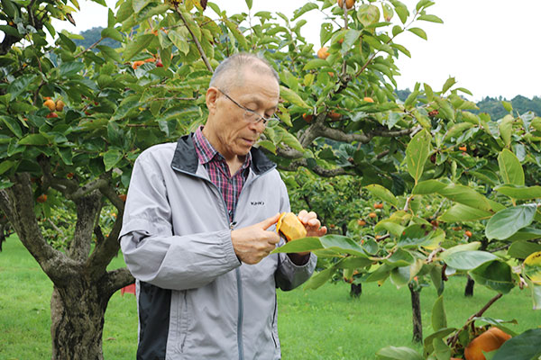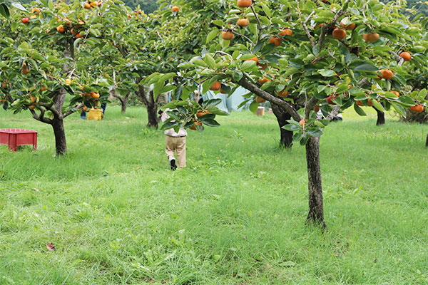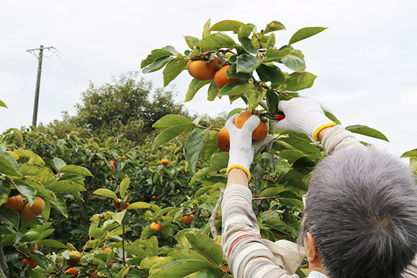 今年は残念ながら、カメムシの大量発生による被害が大きく、収穫祭は中止となってしまいましたが、今年度の柿の収穫を行いました。