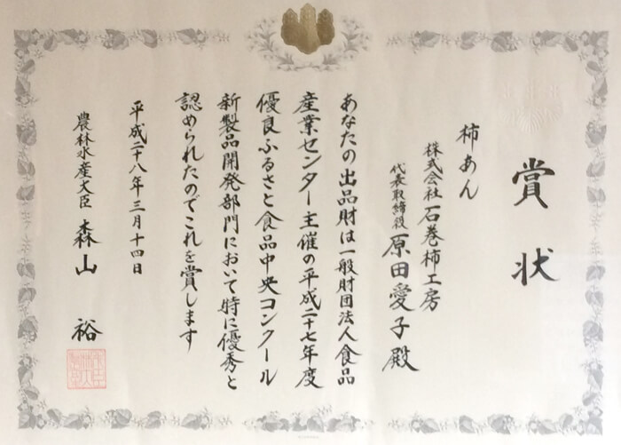 私たちの気持ちが認められて大変うれしく思います。 柿あんご購入はこちらから