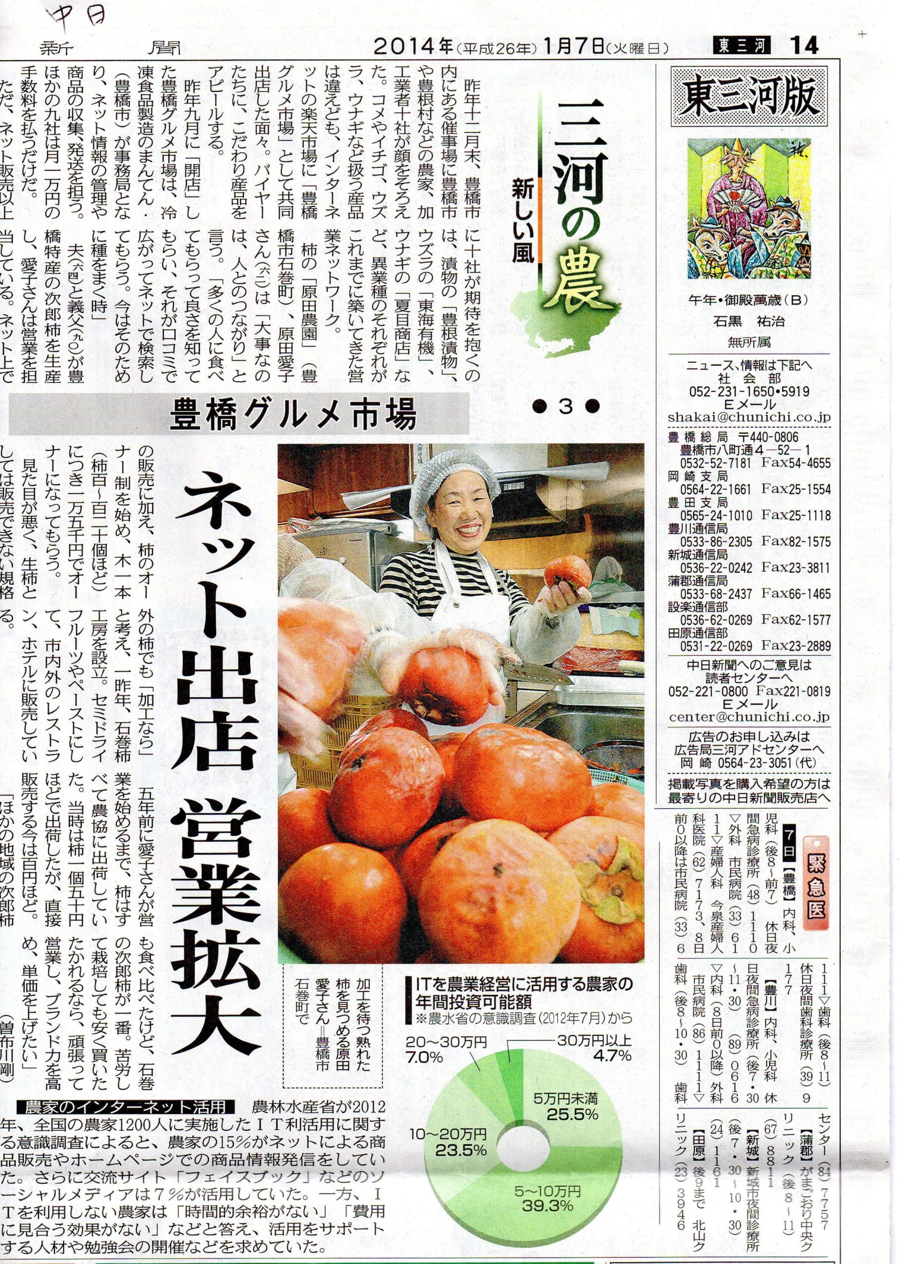 昨年末中日新聞の方が作業風景を取材してくださいました。 豊橋の次郎柿が多くの方に知っていた […]