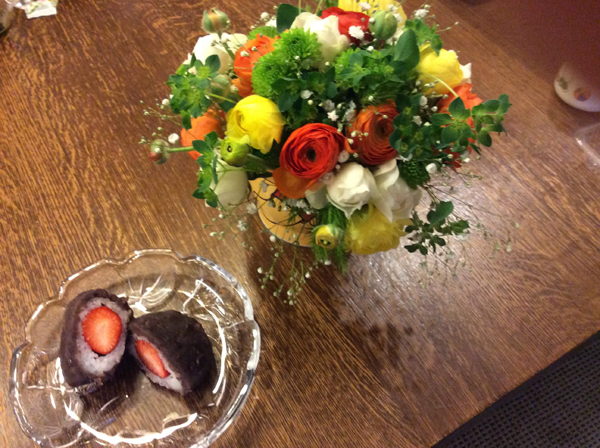 今日は長女のお誕生日。 プレゼントに花束を作りました。 珍しいイチゴおはぎ!うーむイマイチ