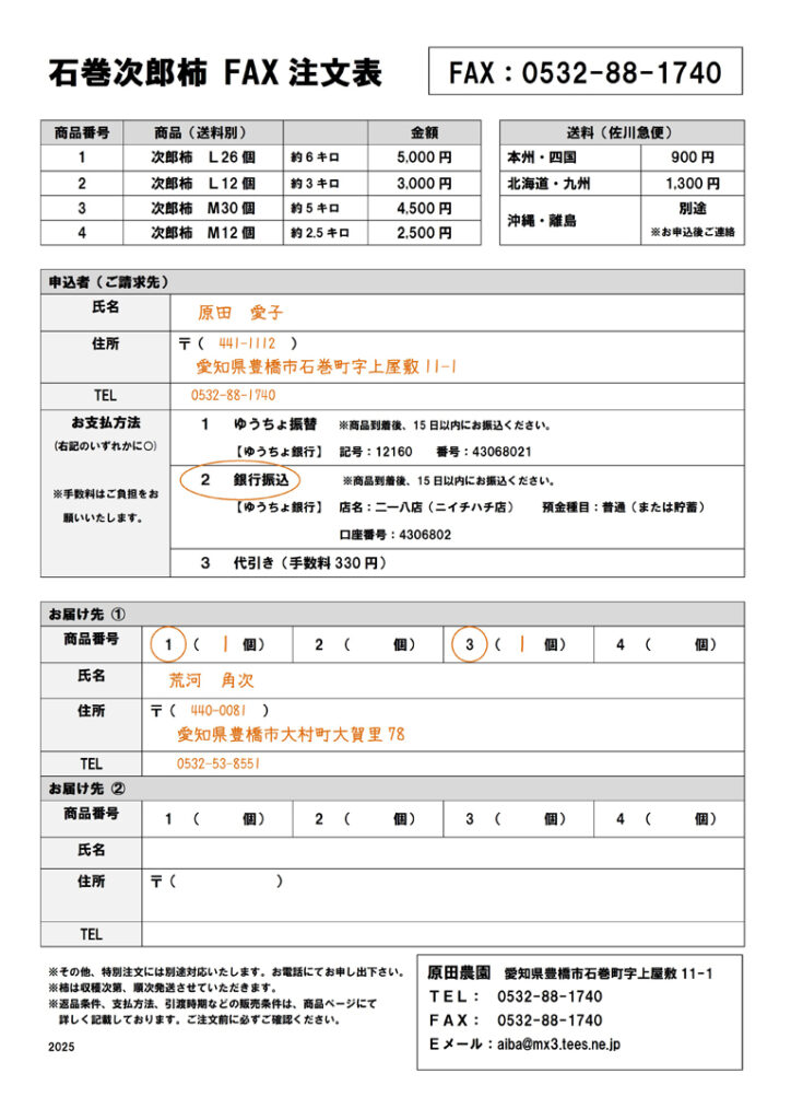2025年 次郎柿の通信販売ご予約・ご注文は終了しました。